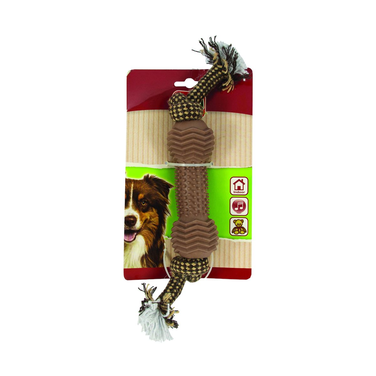 Cette haltère en caoutchouc accompagnée d’une corde permettra au chien de libérer son surplus d’énergie et de partager des moments de complicité avec son maitre