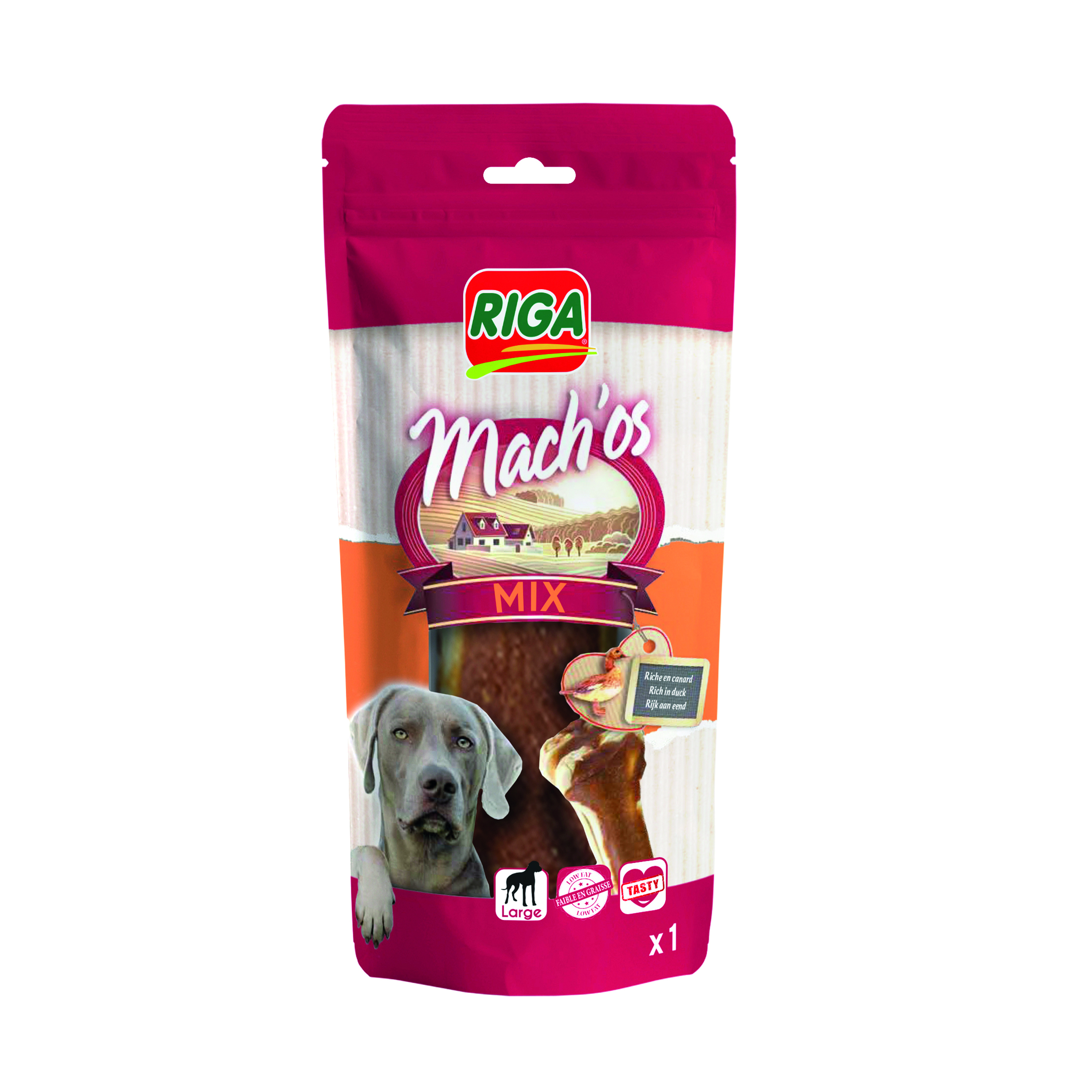 Les chiens ont par nature besoin de rogner et de mastiquer. MACH’OS MIX est une récompense savoureuse qui contribue à l'hygiène bucco-dentaire de votre chien tout en le distrayant. Elle est composée de peau de bœuf séchée à l'air ambiant et de délicieuse viande de canard. MACH’OS MIX est un produit savoureux, favorisant la mastication utile et prolongée.