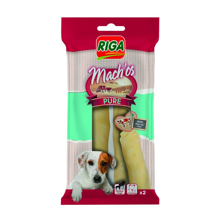Les chiens ont par nature besoin de rogner et de mastiquer. MACH’OS PURE est fabriqué avec du cuir de bovin naturellement séché et sans l’apport d’additifs. Il constitue un très bon exercice pour les mâchoires et muscles masticateurs tout en étant un excellent passe-temps pour l’animal. Sous l’action de la mastication MACH’OS agit comme une brosse à dents contre la plaque dentaire et le tartre à l'origine de la mauvaise haleine. MACH’OS PURE est un article à mastiquer savoureux favorisant la mastication utile et prolongée. Ce produit n’est pas un aliment et ne doit pas remplacer une alimentation complète.