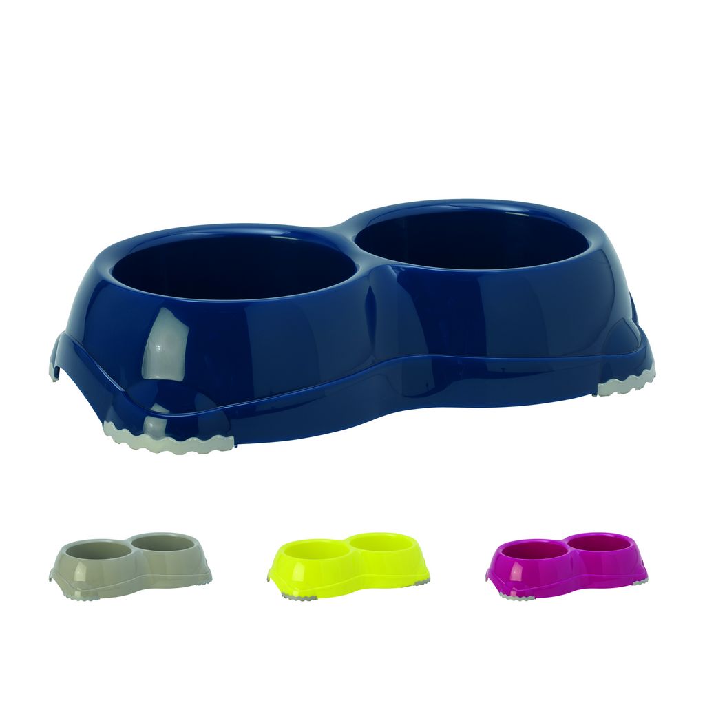 Cette mangeoire double antidérapante est pratique et facile à nettoyer. Mangeoire en plastique possédant des patins en caoutchouc qui évite que son contenu soit renversé. Disponible en plusieurs coloris.