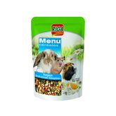 Ce menu à base de céréales et de fruits déshydratés est très appréciée des petits rongeurs herbivores (lapins, cochons d'Inde, octodons, chinchillas). Elle apporte un supplément de vitamines et permet de varier leur alimentation tout en satisfaisant leur besoin naturel de ronger.
