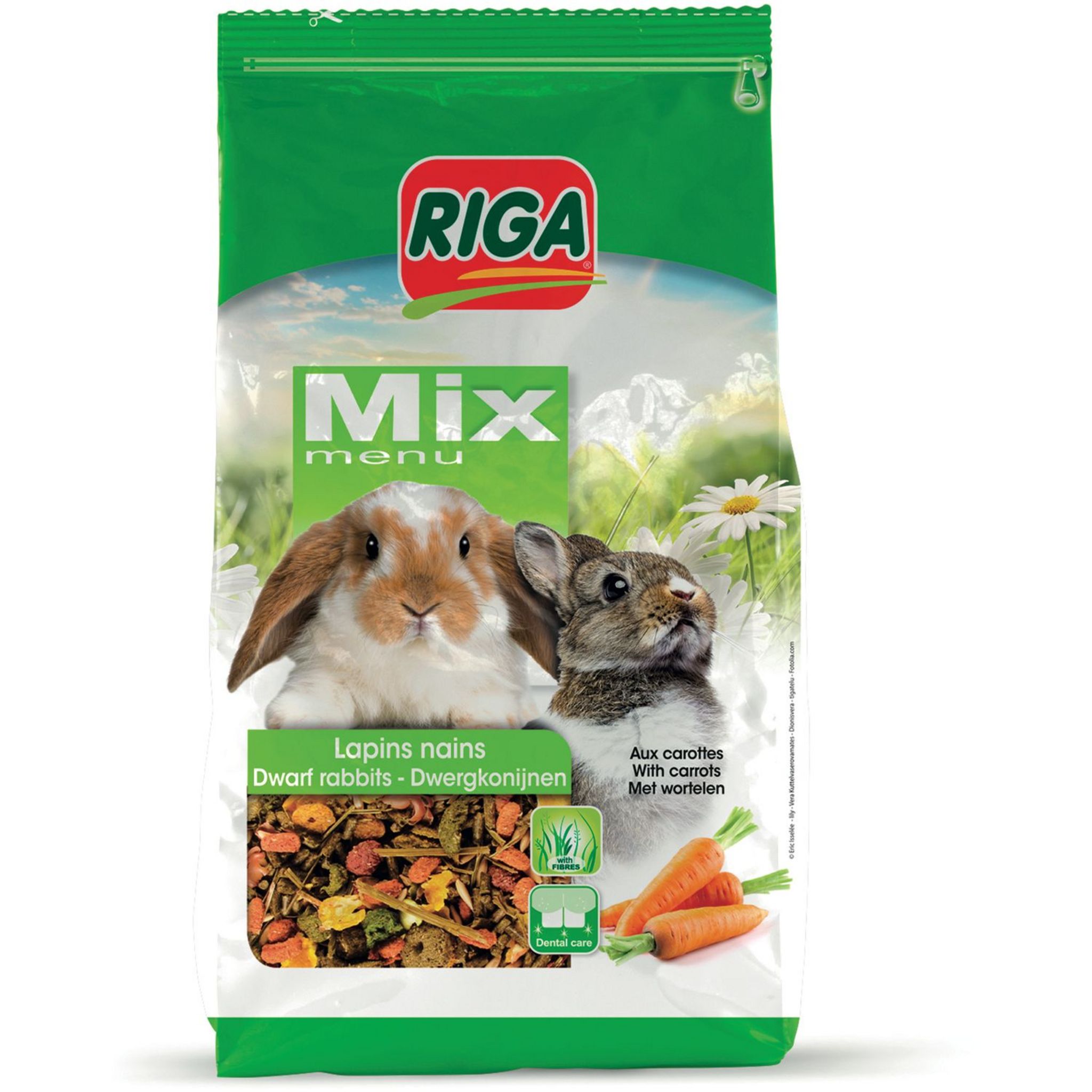 Aliment complet pour lapins nains IX lapins nains est un aliment complet et équilibré composé de céréales, de granulés extrudés et de légumes. Ce menu vitaminé constitue un menu énergétique de grande appétence apprécié des lapins nains. Les fibres longues contenues dans les granulés extrudés favorisent l’usure des dents. Les fructo-oligosacccharides améliorent la digestibilité de ce menu. MIX Menu Lapins nains Carottes 1,5 kg