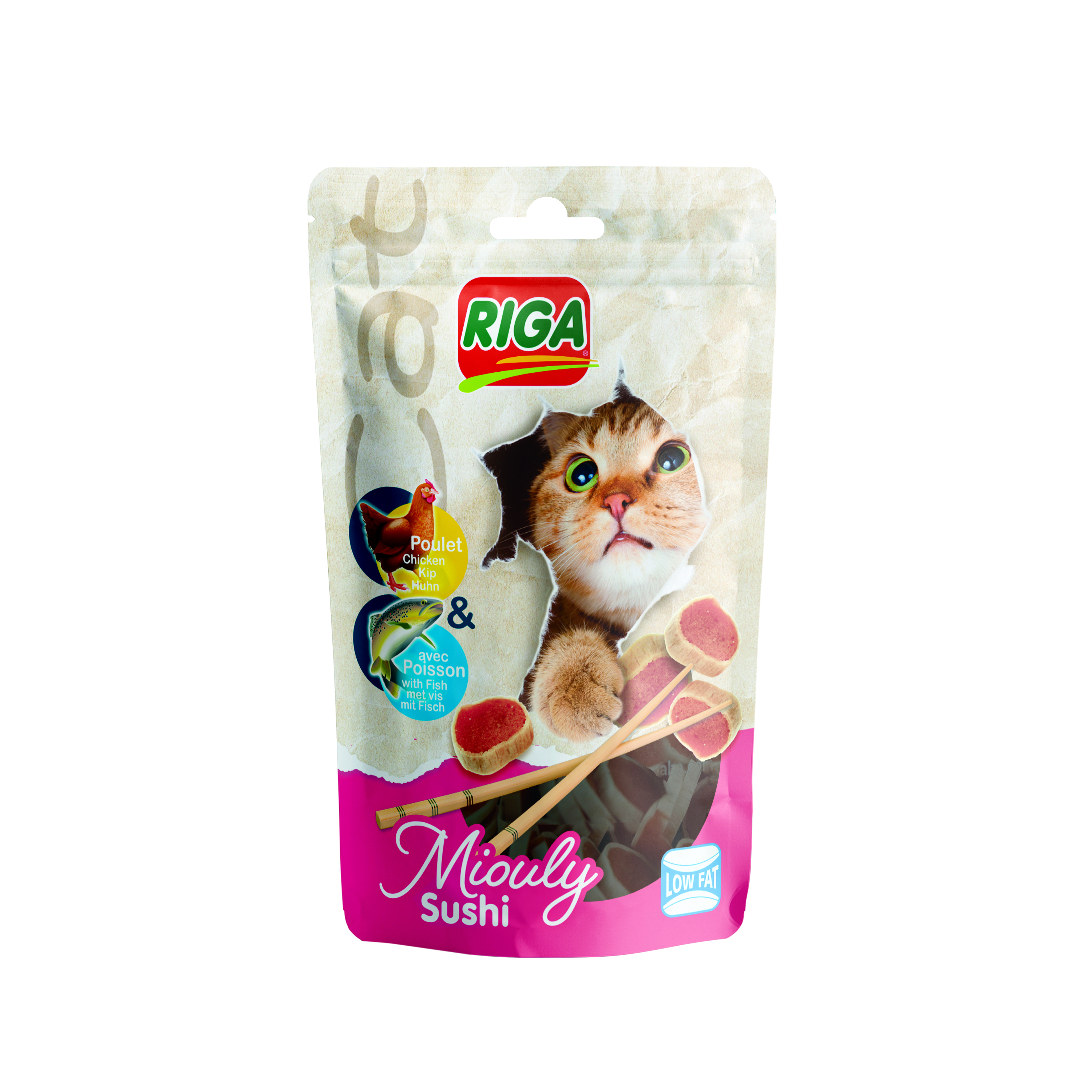 Nos MIOULY Sushi sont des friandises tendres et savoureuses sous forme de petites rondelles. Elles sont donc idéales pour l'éducation et la récompense de votre félin. L'association du poisson au poulet en fait une friandise très appétente pour les chats.