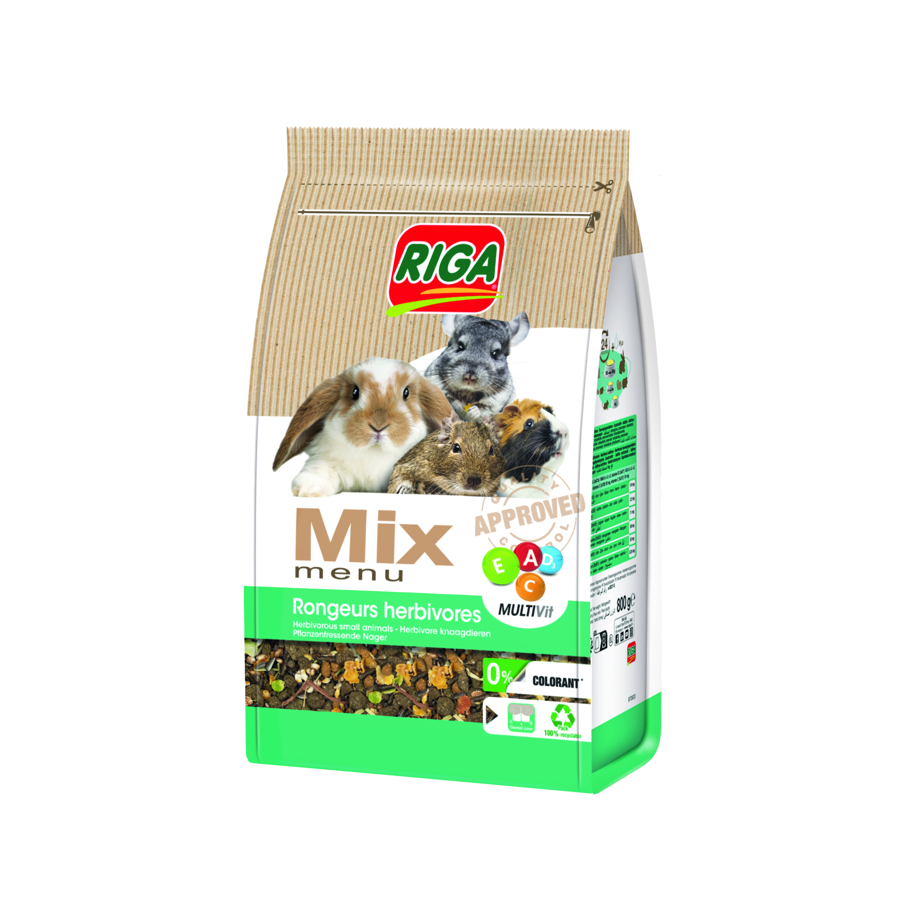 Ce menu vitaminé RIGAMIX répond à l’ensemble des besoins nutritionnels des rongeurs herbivores (lapins nains, cochons d’Inde, chinchillas, dègues). Ce mélange est composé de graines simples, soufflées, floconnées ou extrudées favorisant l’usure naturelle de leurs dents. Les granulés extrudés évitent le comportement de tri sélectif ainsi que le développement de carences.