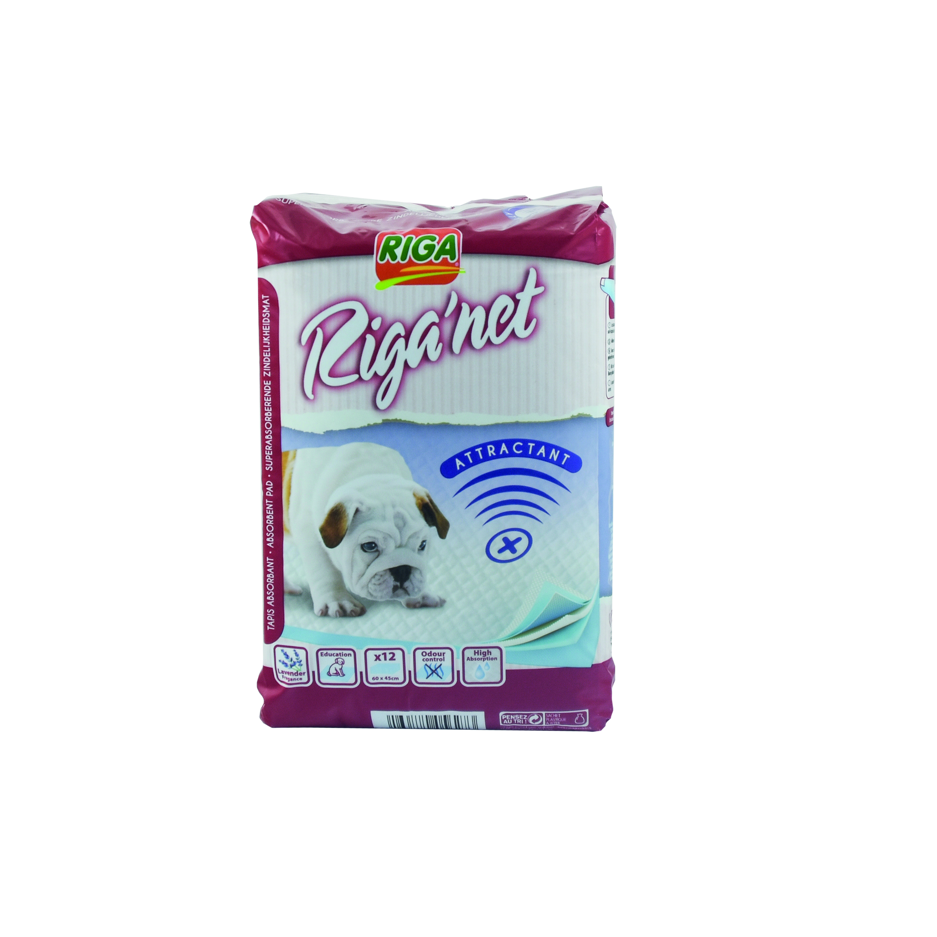 RIGA NET est un tapis de propreté super absorbant multicouches pour l'hygiène des chiens d'intérieur. Son pouvoir d'absorption permet d'éliminer les odeurs d'urine. Un produit attractant au centre du tapis dégage une odeur ressentie par le chien pour l’attirer à cet endroit. Très pratique pour aider les chiots à devenir propre ou pour permettre aux chiens malades de faire leurs besoins à l'intérieur.