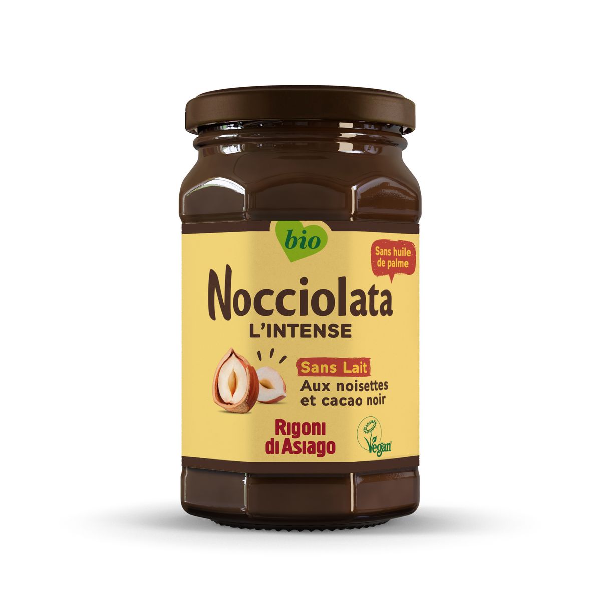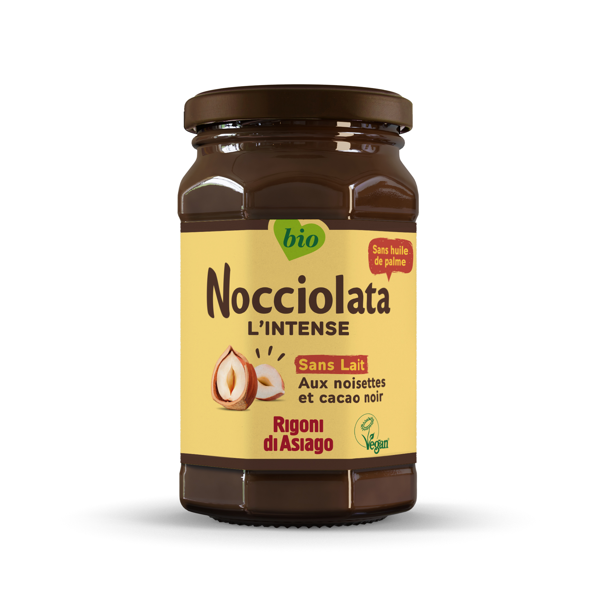 Nocciolata l'intense pâte à tartiner bio sans lait au noisettes et cacao noir sans huile de palme
