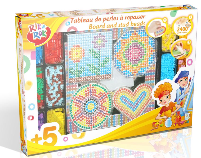 Découvre ce tableau de perles à repasser Rik & Rok ! Avec plus de 2400 perles amuse toi à créer les motifs en suivant les modèles fournis ou, créé ton propre motif et et utilise les perles de toutes les couleurs pour le sertir !