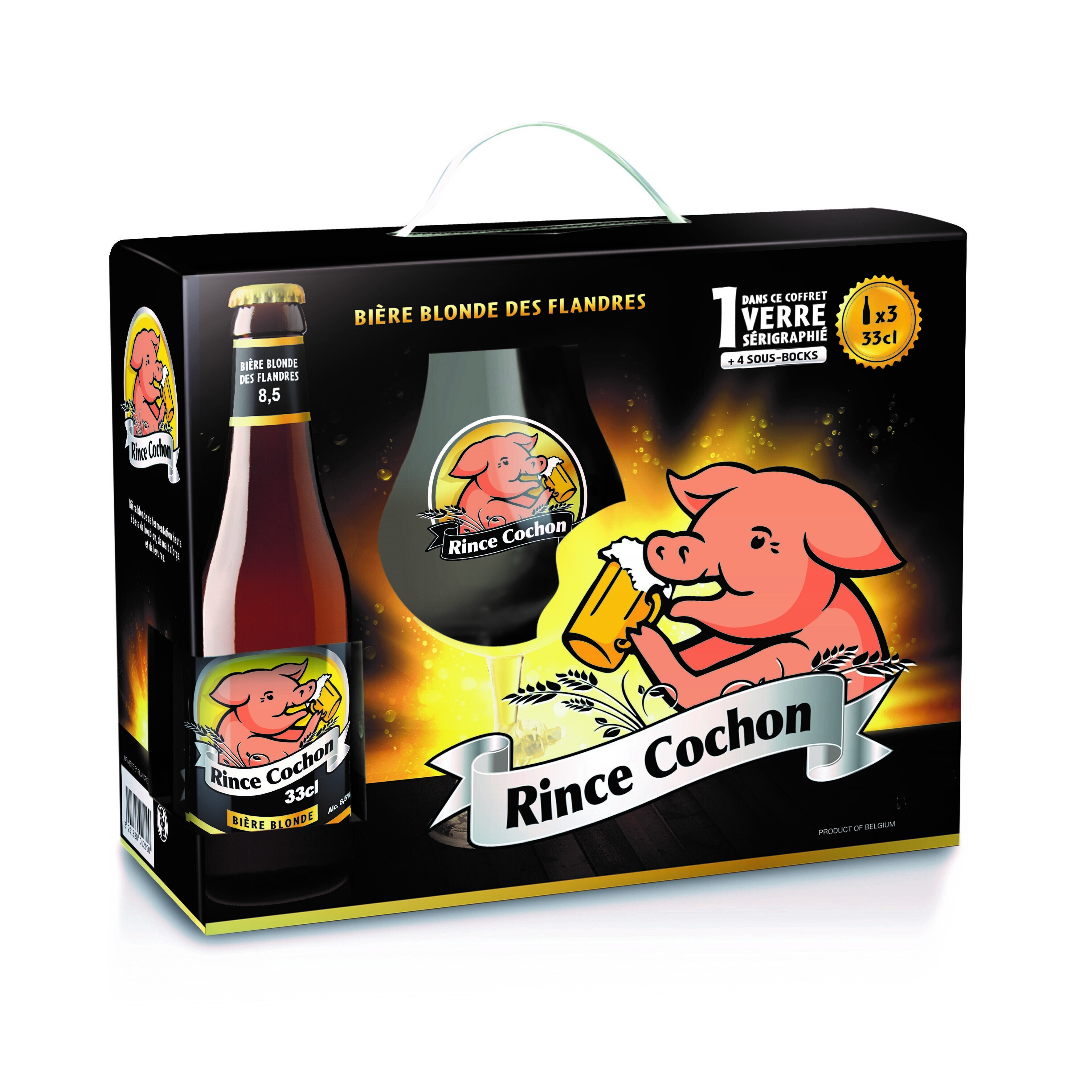 3 BOUTEILLES RINCE COCHON BLONDE + 1 VERRE