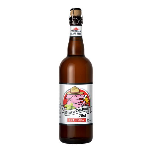 Cette bière d’une teneur en alcool de 6° présente un caractère houblonné typique et une amertume très prononcée. Intense en attaque, son amertume se fluidifie et s’adoucit en arrière bouche. Les houblons aromatiques américains lui confèrent des touches d’agrumes et de pamplemousse, aussi bien au nez qu’en bouche. RINCE COCHON IPA 75CL