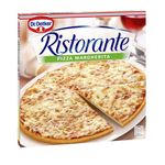 Pizza à pâte fine et croustillante richement garnie de Mozzarella et de Gouda, surgelée