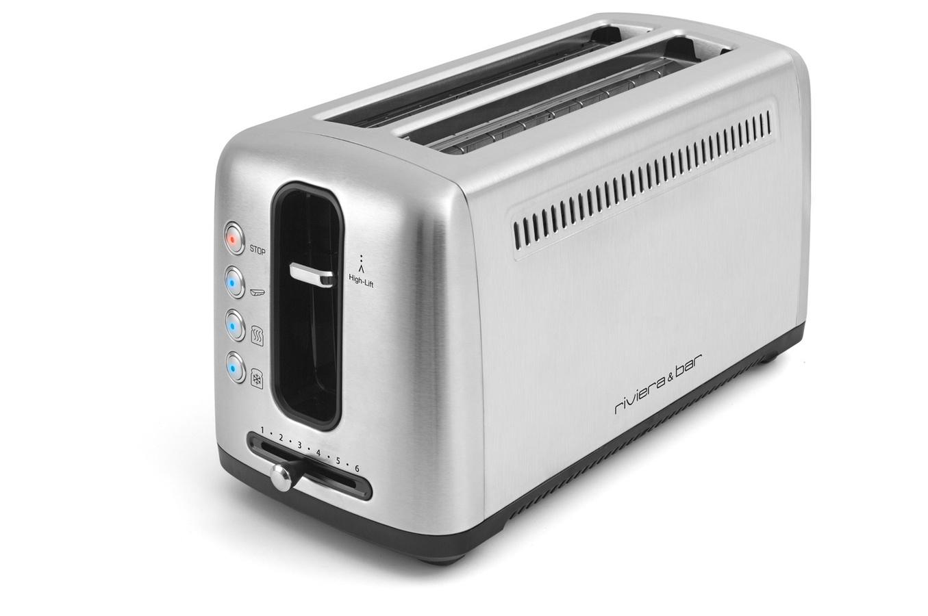 Riviera & Bar GP540A Avec le Grille-pain inox GP 540A, faites croustiller vos tartines !Ses 2 fentes extra-longues permettent de faire griller des tranches de pain jusqu'à 25 cm de long ! Position High Lift pour récupérer facilement les petites tranches, fonctions Baguette, Réchauffage et Pain congelé pour pain de mie, baguettes, brioches?, fonction Stop pour interrompre le dorage à tout moment...DESIGN ET ÉLÉGANT :Corps tout inox satinéBoutons de commandes retroéclairésHabillage des boutons et inserts en finition chromeCONFORT D'UTILISATION :2 fentes extra-longues 25 cm avec auto-centrage pour s'adapter à tous les types et tailles de painsPosition High Lift pour récupérer facilement les petites tranchesPOLYVALENT :Fonctions Baguette, Réchauffage et Pain congelé pour pain de mie, baguettes, brioches?Fonction Stop pour interrompre le dorage à tout momentSélecteur de niveau de dorage 6 positionsMAIS AUSSI :Arrêt automatique et manuelTiroir ramasse-miettes amovibleEnrouleur de cordonPieds antidérapants
