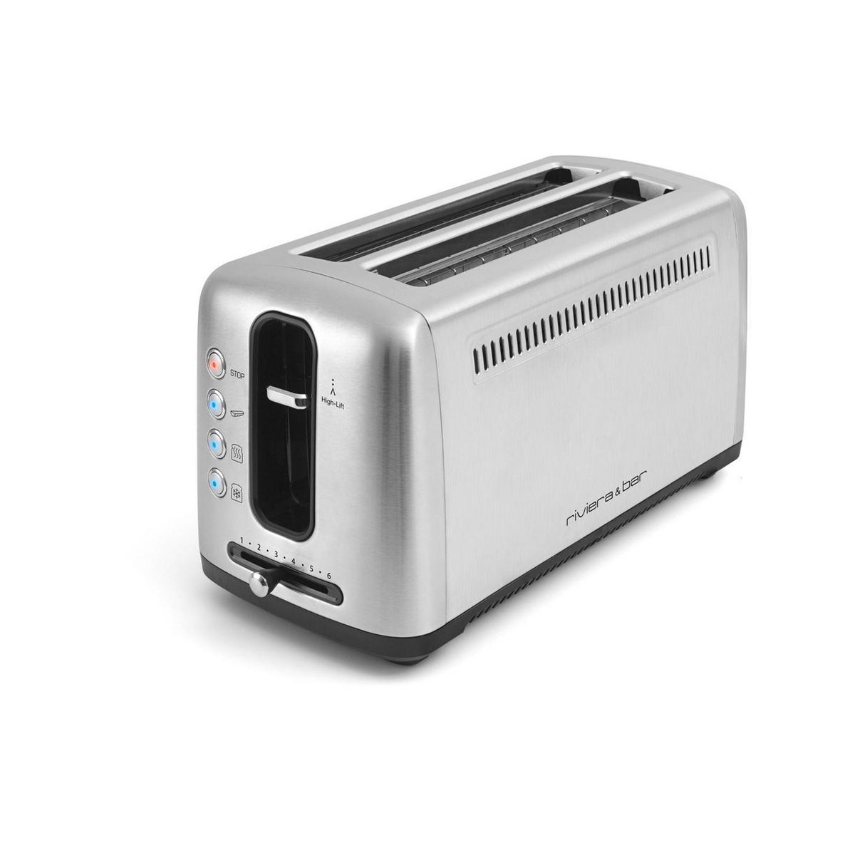 Riviera & Bar GP540A Avec le Grille-pain inox GP 540A, faites croustiller vos tartines !Ses 2 fentes extra-longues permettent de faire griller des tranches de pain jusqu'à 25 cm de long ! Position High Lift pour récupérer facilement les petites tranches, fonctions Baguette, Réchauffage et Pain conge