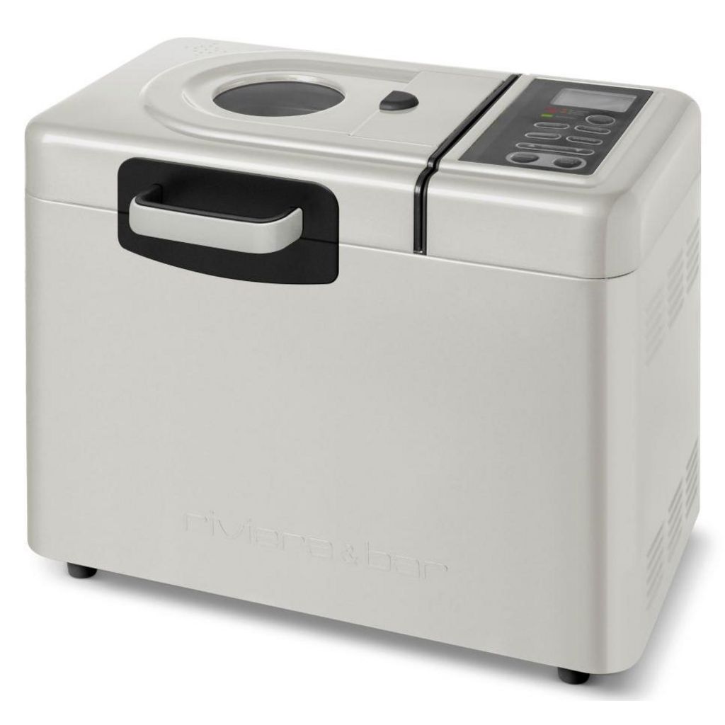 Riviera & Bar MP579A Complète, la machine à pain Health MP 579A de Riviera & Bar intègre plusieurs programmes pour des pains et recettes variées, faits maison !Mais elle est surtout l'allié idéal contre des allergies au gluten grâce à ses options Pain Sans gluten ainsi qu?aux programmes adaptés cakes et pâtes à pizza. Sans compter ses 10 autres programmes personnalisés et utilisables pour les autres recettes sans gluten.Polyvalente, elle intègre également 14 programmes prédéfinis pour diverses variétés de Pains, Cakes, Pâtes à viennoiseries, Pâtes à pizza, Confitures? et 10 programmes Personnels aussi utilisables pour les recettes de Pains blancs, complets, sucrés, salés et Cakes.Garantie sans Bisphénol A et sans PFOA, elle s'inscrit également dans la gamme HEALTH dont la vocation est de promouvoir au quotidien une alimentation variée, équilibrée et gourmande.