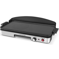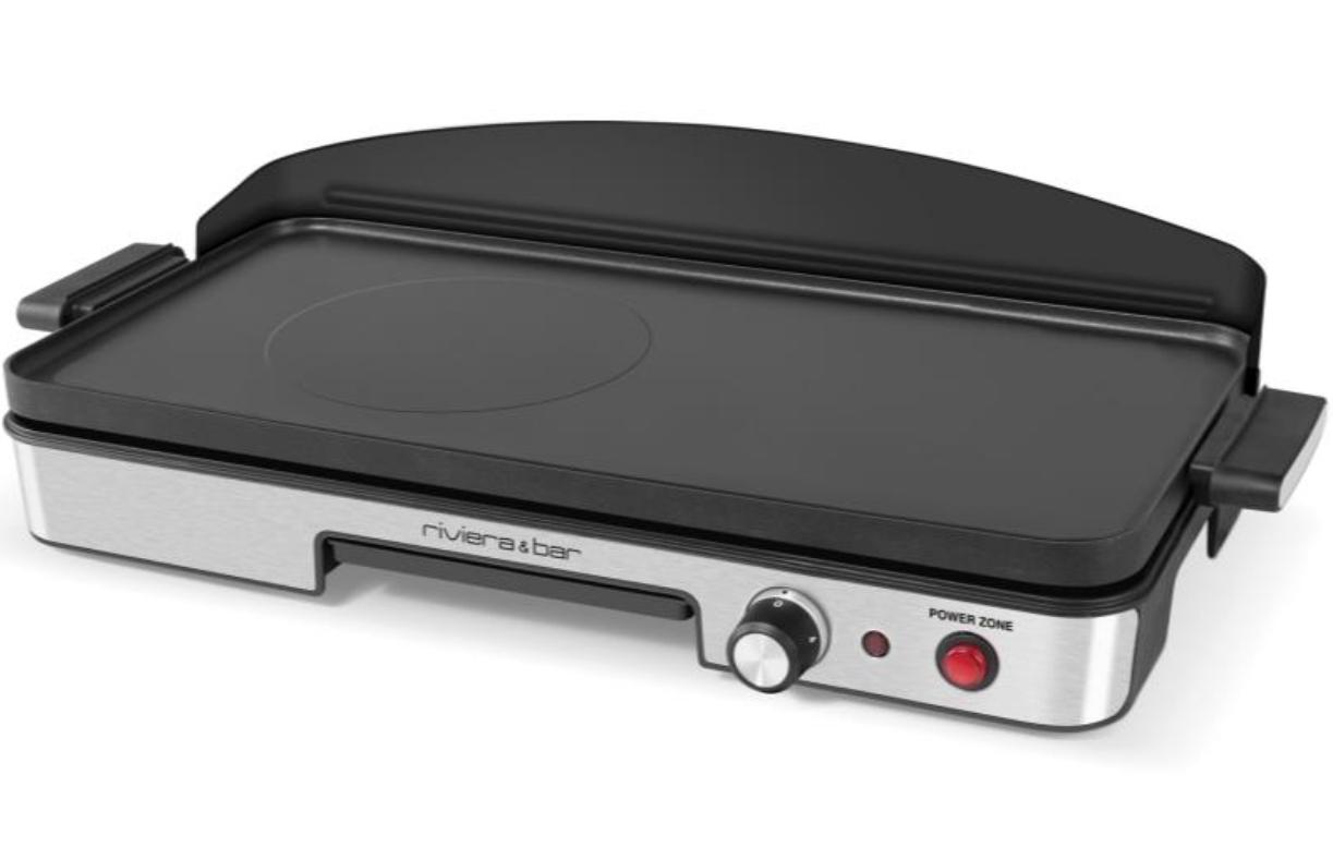 Riviera & Bar QPL345 Plancha Power Zone Riviera & Bar QPL345, La Solution pour une cuisson simultanée plancha traditionnelle et viandes plus épaisses.Précise, la plancha QPL 345 offre 4 niveaux de température jusqu?à 250°C ainsi que le Maintien au chaud. Et pour combiner la cuisson des mets plus épais, son booster Power Zone (avec interrupteur indépendant) officie à l?envi.Conviviale, cette nouvelle venue promet des recettes savoureuses avec sa surface de cuisson généreuse et sa plaque massive en fonte d?aluminium et double résistance intégrée. Son revêtement antiadhésif plébiscite une cuisine saine, sans aucune matière grasse.Côté confort d?utilisation, elle s?apprécie jusque dans les détails : plaque de cuisson, pare-graisse en Inox et tiroir à jus sont compatibles lave-vaisselle.PLAQUE MODULABLE :- Plancha traditionnelle pour cuire toutes sortes d?émincés.- Power zone : surface exclusive pour saisir les viandes et poissons épais.- Interrupteur indépendant pour Power zone.CUISSON POLYVALENTE ET CONVIVIALE :- Cuisson de fruits de mer, légumes, émincés de viandes et poissons?- Plaque inclinée pour évacuer les graisses.- Plaque amovible pour service direct à table.CONFORT D'UTILISATION :- 4 niveaux de température et Maintien au chaud.- Plaque de cuisson avec revêtement antiadhésif sans PFOA.- Pare-graisse inox amovible.FACILITÉ D'ENTRETIEN :- Tiroir récupérateur de graisses.- Plaque de cuisson, pare-graisse, tiroir à jus compatibles lave-vaisselle.MAIS AUSSI?- Puissance élevée jusqu?à 1900 W.- Grande surface de cuisson : 50 x 22 cm.- Plaque en fonte d?aluminium avec résistances intégrées.- Face avant en inox satiné.- Poignées de la plaque en thermoplastique avec inserts finition inox.