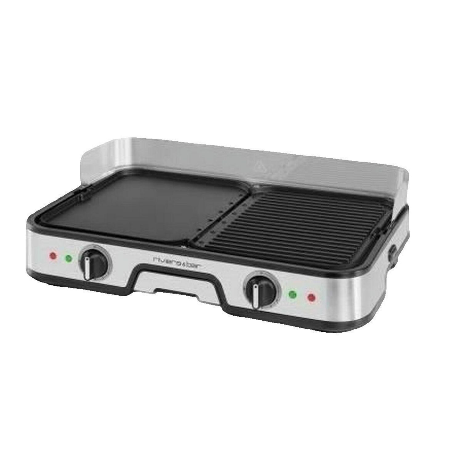 Découvrez la plancha électrique Riviera-Bar QPL525, idéale pour les repas en famille ou entre amis. Avec une puissance de 2000 W et une surface de cuisson spacieuse de 45,5 x 29 cm, elle peut accueillir de 6 à 8 convives. Sa plaque réversible en acier inoxydable satiné offre une face lisse pour légu