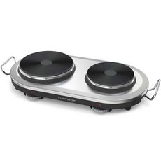 Riviera & Bar QRE450 Réchaud électrique Riviera & Bar QRE450 avec 2 plaques. Corps en acier inox satiné : Design exclusif, ce réchaud associe élégance et noblesse des matériaux. Larges poignées en métal massif chromé pour une prise en main facilitée et sécurité accrue. Réglage de la température par