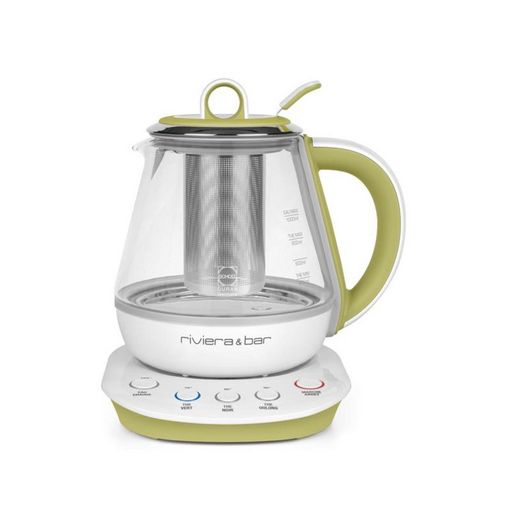 Riviera & Bar BTH244 Théière électrique compacte BTH244 de Riviera&bar. Polyvalente et élégante, elle est conçue pour sublimer vos moments de dégustation. Son design compact et ses dimensions réduites en font l'alliée idéale des petits espaces, tout en offrant une capacité de 0,8 L en mode Théière (de 0.4 à 0.8 L) et jusqu'à 1 L en mode Bouilloire (de 0.2 à 1 L). Grâce à ses 3 programmes prédéfinis de température et durée d'infusion, vous pouvez savourer vos thés préférés, qu'ils soient verts, noirs ou Oolong, dans des conditions optimales. Cette théière est également parfaite pour les thés parfumés, infusions et rooibos, en feuilles ou en sachets - Pour encore plus de flexibilité, utilisez-la comme bouilloire avec ses températures réglables de 75, 85, 95 et 100°C : idéale pour préparer cafés, boissons instantanées, sauces ou soupes déshydratées. Son confort d'utilisation est renforcé par un accès direct aux programmes via des boutons dédiés, des signaux sonores pour suivre chaque étape et un maintien au chaud réactivable de 30 minutes. La verseuse en verre trempé Schott DURAN® et le panier à thé 100 % inox assurent une robustesse et une durabilité maximales - De plus, la base pivotante 360° sans fil et la mise en veille automatique après 5 minutes d'inactivité apportent une praticité au quotidien. Avec une puissance de 800 W et une sécurité anti-surchauffe, cette théière est un concentré de technologie pour un thé parfait, à chaque préparation. Filtre antidépôt inox intégré au couvercle. Verseuse avec fond inox et capteur plat pour un nettoyage facile.