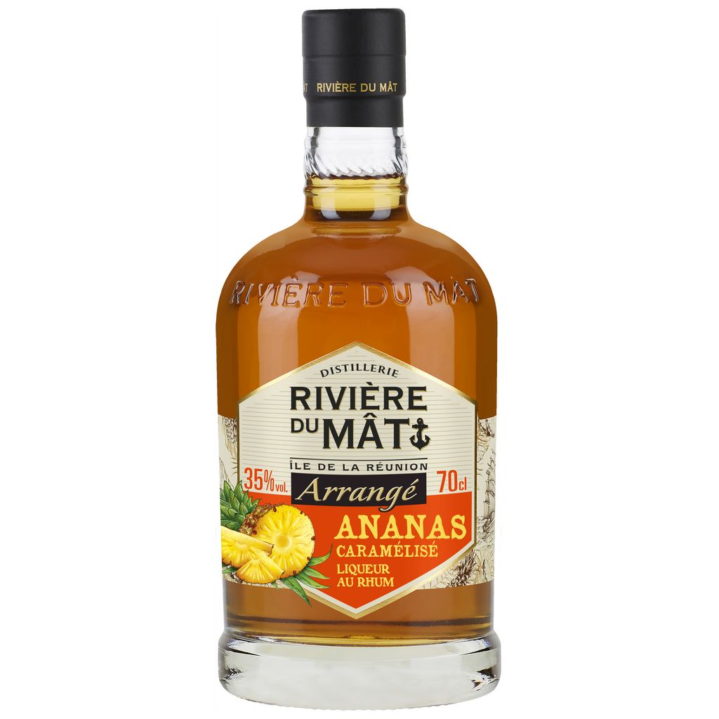 L’Arrangé Rivière du Mât Ananas Caramélisé est élaboré à partir de Rhum Blanc issu de la Distillerie sur l’île de la Réunion. Mêlant un goût intense de Rhum Blanc et une note d’ananas caramélisé macéré et d’épices, il se déguste en toute occasion.