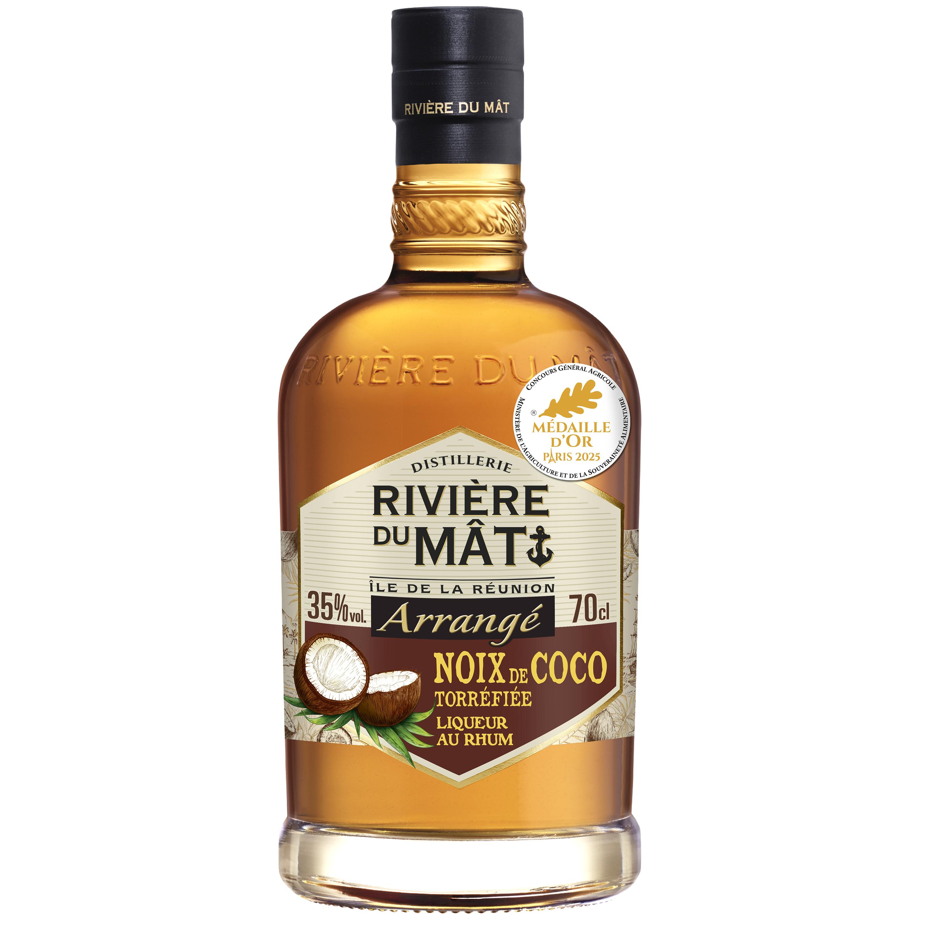 L'Arrangé Coco Torréfié au Rhum réunionnais RIVIERE DU MAT mêle la puissance aromatique du Rhum aux notes gourmandes de la noix de coco. A savourer pur à température ambiance ou glacé, et en toutes occasions : en soirée, à l'apéritif ou en digestif ! La Distillerie RIVIERE DU MAT élabore des Rhums à partir de mélasse issue des plantations de cannes à sucre au sol volcanique qui, conjuguée aux eaux pures des rivières de l'Est, apportent lors de la fermentation et de la distillation des tonalités aromatiques singulières dévoilant toute la richesse d'expression du terroir de la Réunion. Spécialité originaire de la Réunion, l'Arrangé Coco Torréfié RIVIERE DU MAT est élaboré à partir de rhum blanc de sa Distillerie dans lequel ont macéré de la noix de coco torréfiée et des épices exotiques.