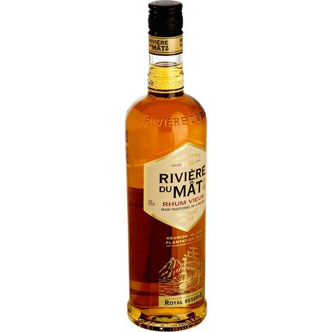 Élaboré à partir de la canne à sucre de la Réunion, le Rhum Vieux RIVIERE DU MAT offre un bouquet complexe grâce à une sélection de rhums traditionnels vieux choisis pour leur harmonie et leur belle rondeur. Cet assemblage de rhums âgés issus de différents fûts lui permet de développer les saveurs d’un grand rhum. Sa robe est dense avec des reflets cuivrés, son nez offre des parfums de fruits secs et des notes boisées et sa bouche est généreuse avec des notes torréfiées, épicées et de miel pour une finale longue et légèrement épicée. La cuvée Royal Reserve se déguste pure à température ambiante ou en cocktail. La Distillerie RIVIERE DU MAT élabore à Saint-Benoît des Rhums à partir de mélasse issue des plantations de cannes à sucre au sol volcanique de la Réunion qui, conjuguée aux eaux pures des rivières de l’Est, apportent lors de la fermentation de la mélasse fraîche et de la distillation en alambic des tonalités aromatiques singulières dévoilant toute la richesse d’expression du terroir réunionnais. Le Rhum Vieux Royal Reserve est ensuite longuement vieilli en fûts de chêne dans les chais de Saint-Louis au sud de l’île, maturation au cours de laquelle il va gagner en structure et en complexité. Rhum vieux traditionnel