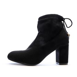Craquez pour les bottines femme de la marque RKS !- Tige montante- Coloris : Noir- Talon 8cm- Tige effet microfibre- Lien de serrage