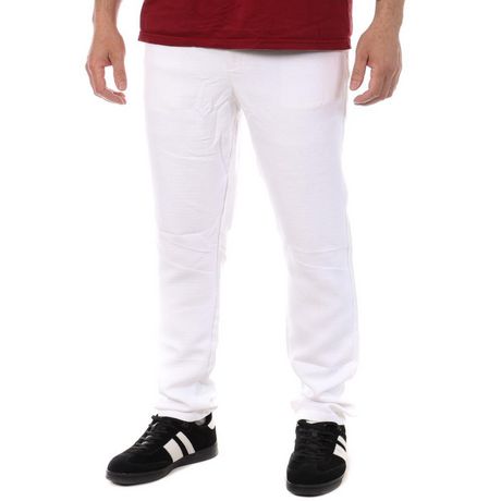 Optez pour ce pantalon en toile RMS26100% PolyesterColoris : Blanc Coupe droite5 poches Braguette zippée Passants pour ceintureLes tailles indiquées correspondent aux tailles US !