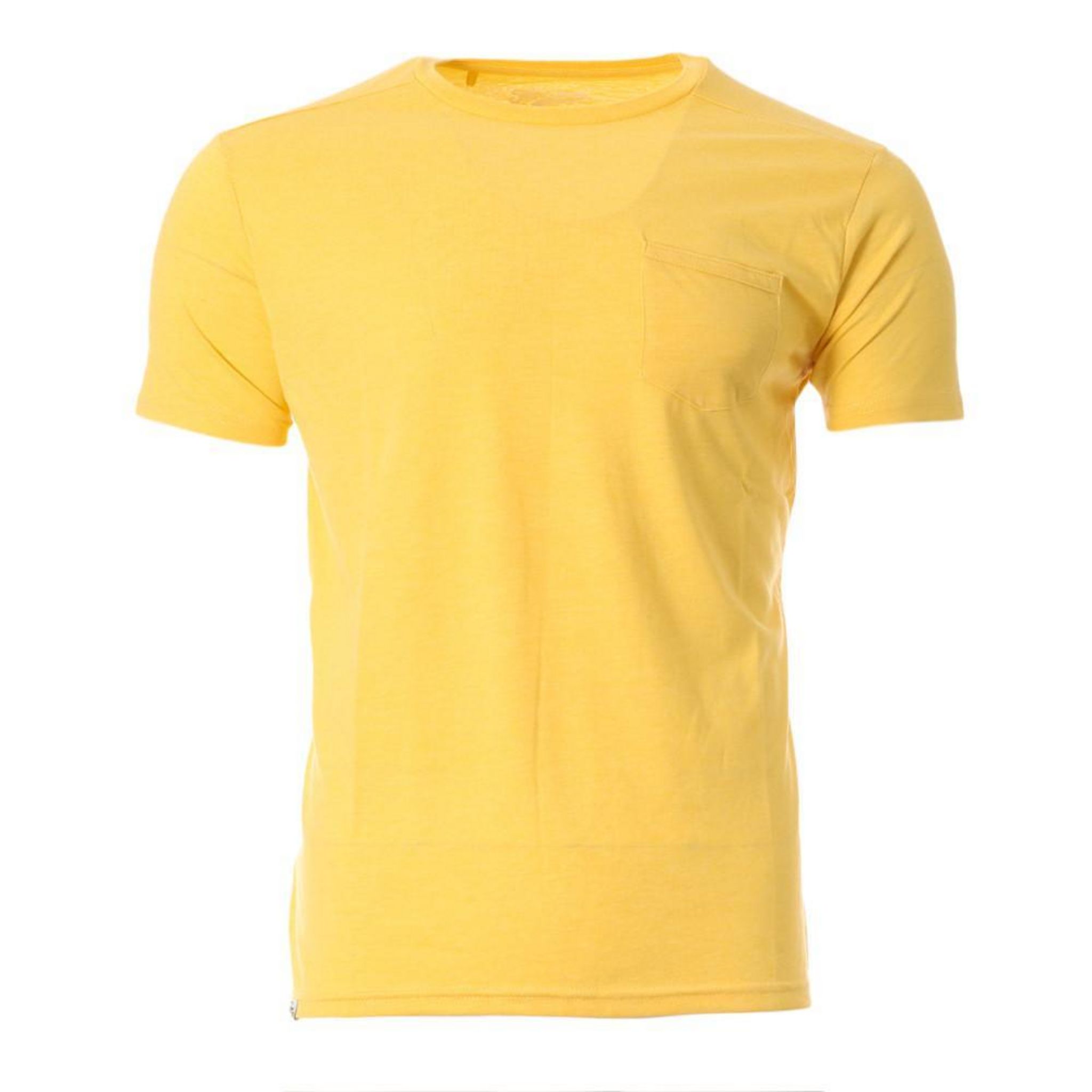 Optez pour ce t-shirt de la marque RMS26 ! Coloris : Jaune Manches courtes Col rond Composition : 50% coton, 50% polyester