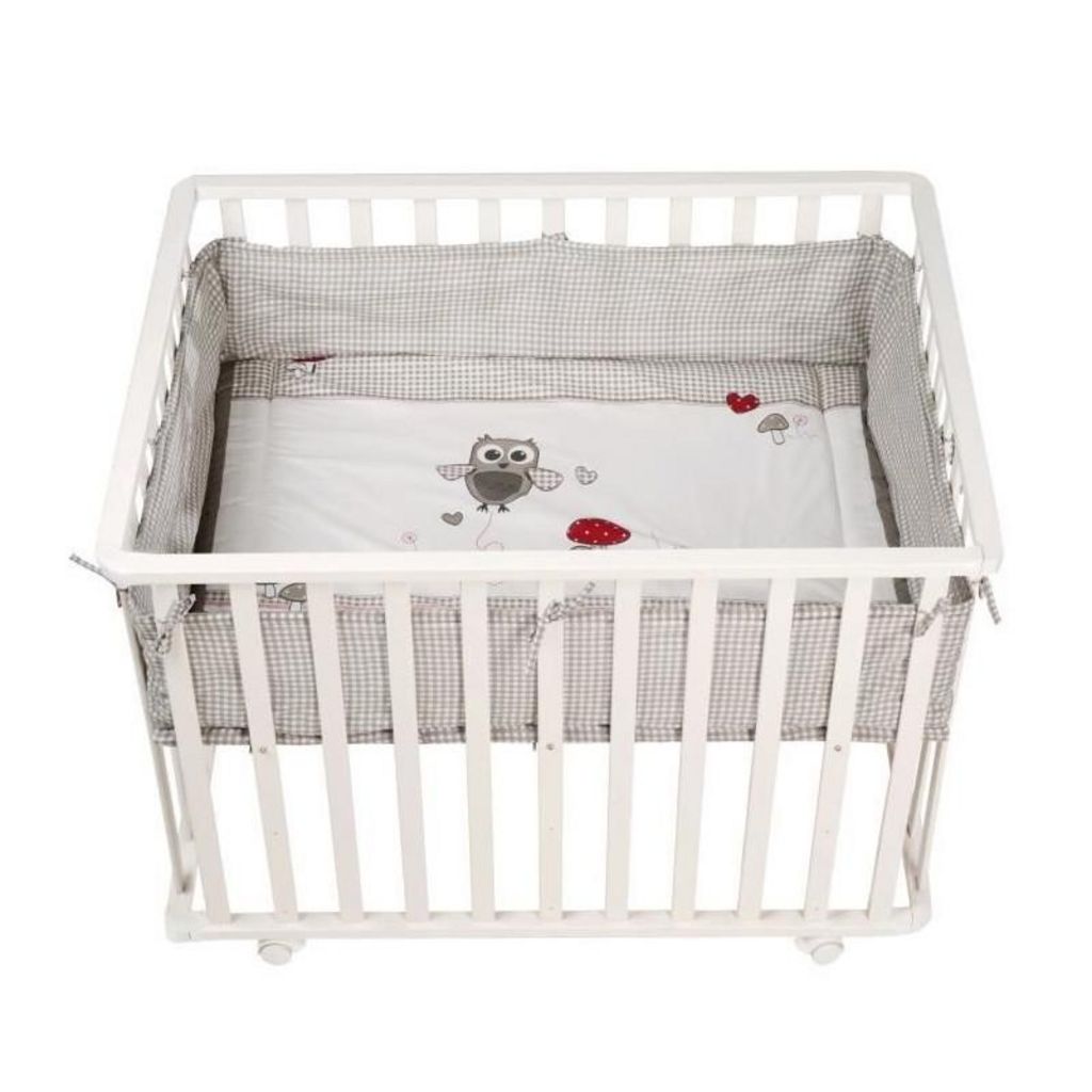 Parc Bébé 100x75 cm + Tapis Adam et Eule Imprimé Chouette + 4 Roues - ROBA - Bois blanc
