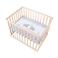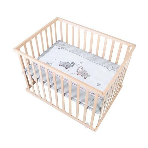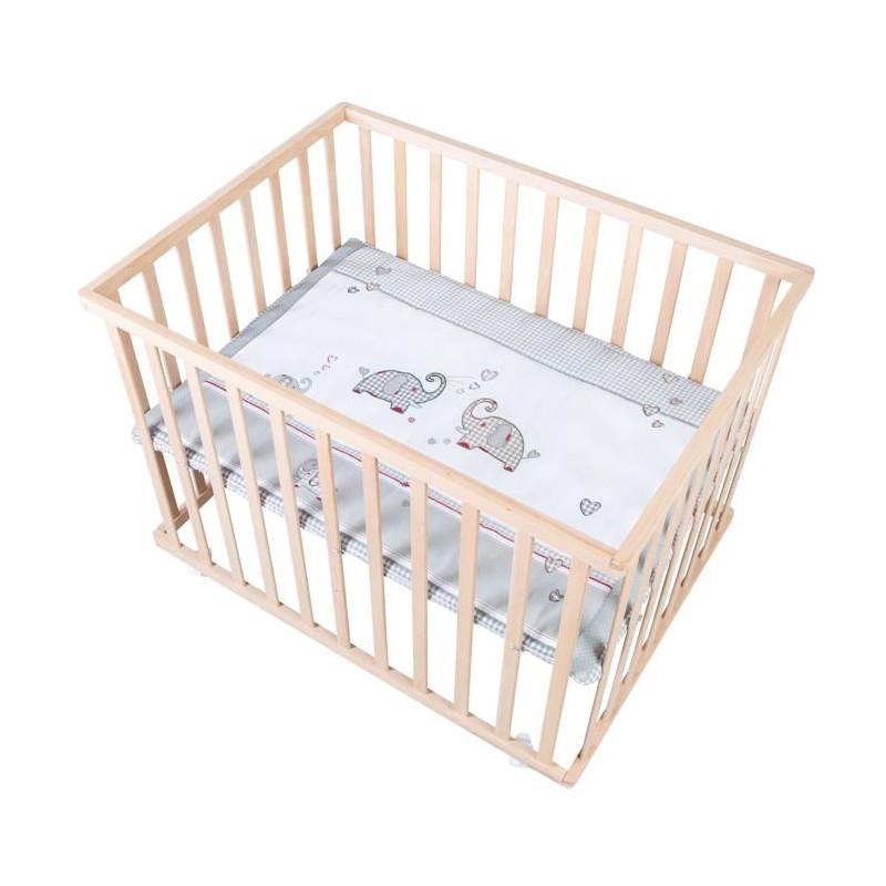 Parc Bébé sur Roulettes - ROBA - Jumbotwins - Réglable en Hauteur - Tapis de Parc Inclus - Bois Massif Naturel - Motif Élép