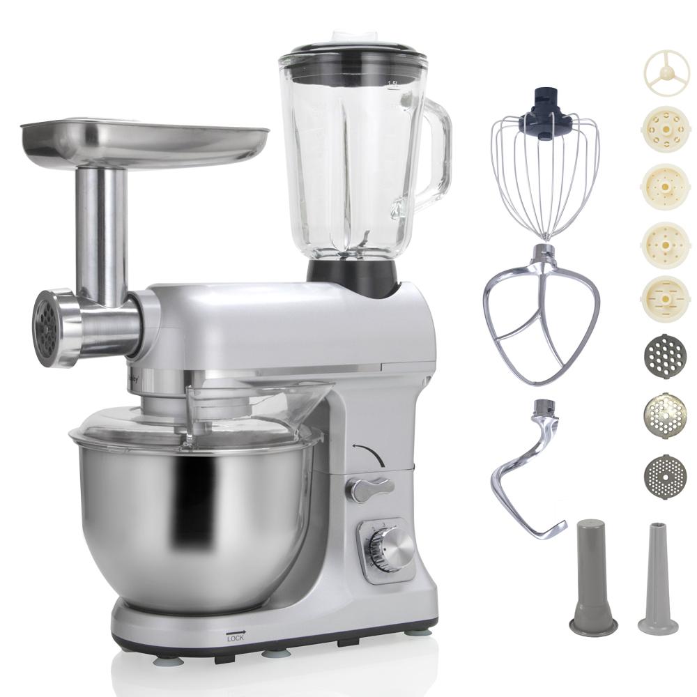 Robot multifonctions 5l 1000w silver avec hachoir et blender 1,5l en verre - robimix silver