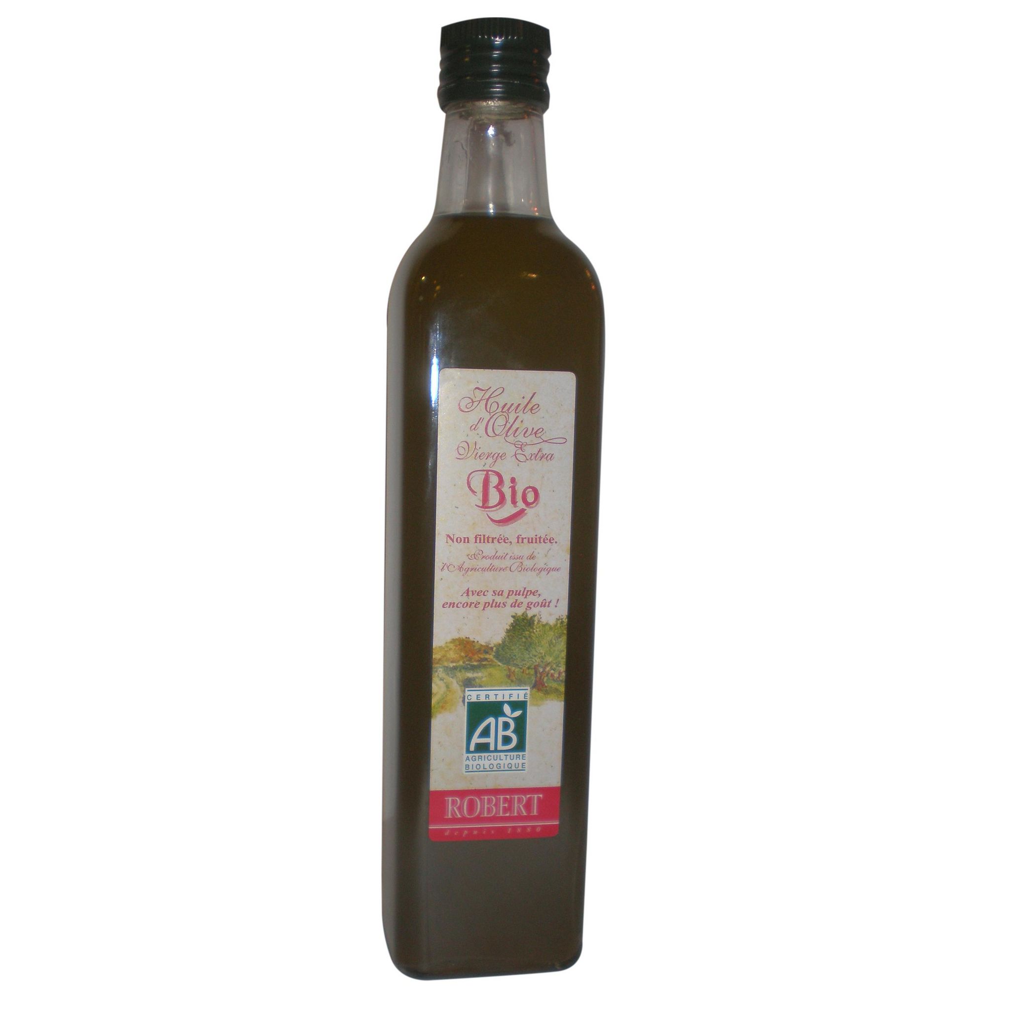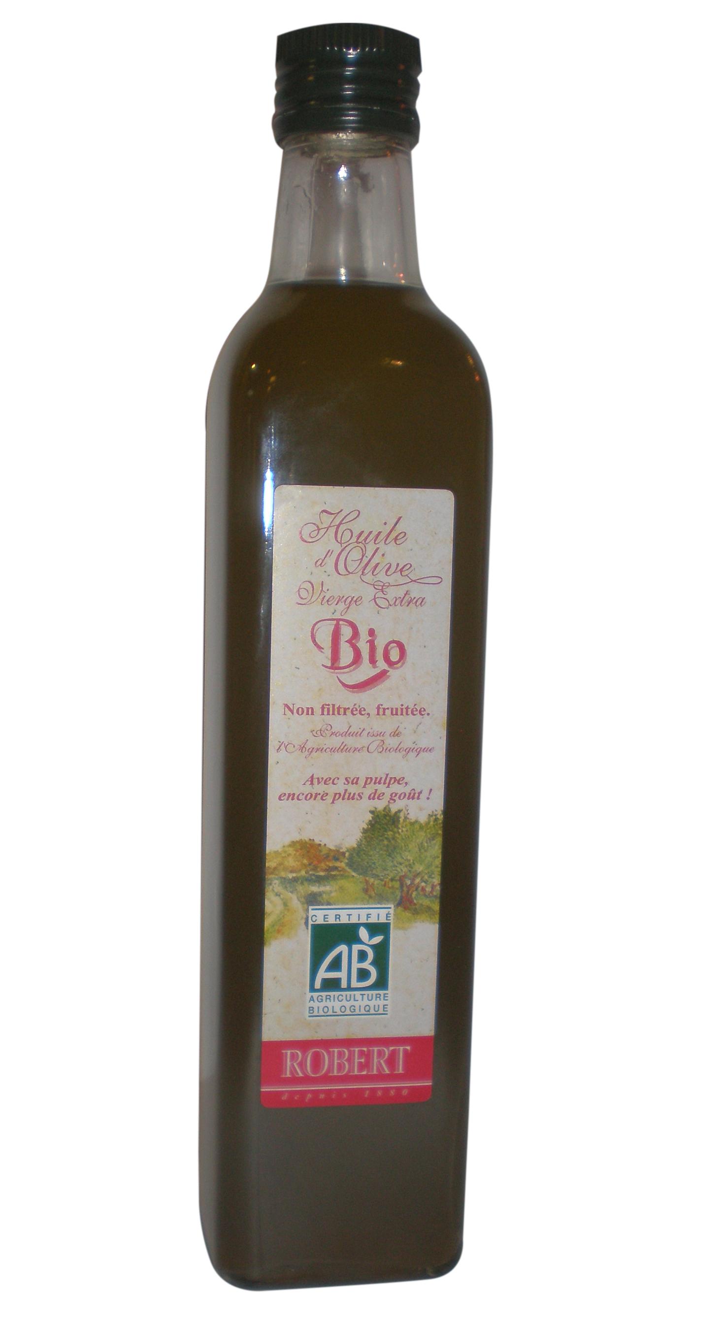 Huile d'olive vierge extra bio non filtrée et fuitée