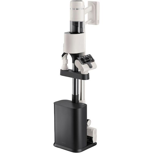 | Station de charge et de vidage | Pour recharger et vider automatiquement le réservoir de l'aspirateur dans le bac/sac de la station. Permet également de le ranger ainsi que ses accessoires | |