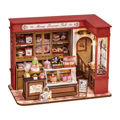 C'est l'heure des gourmandises de Honey Dessert Talk, une pâtisserie française sucrée et élégante de Rolife. Cette miniature à réaliser soi-même regorge de créations délicieuses, présentées avec art dans de charmantes vitrines et des étagères en bois. Ajoutez cet adorable modèle à votre collection d