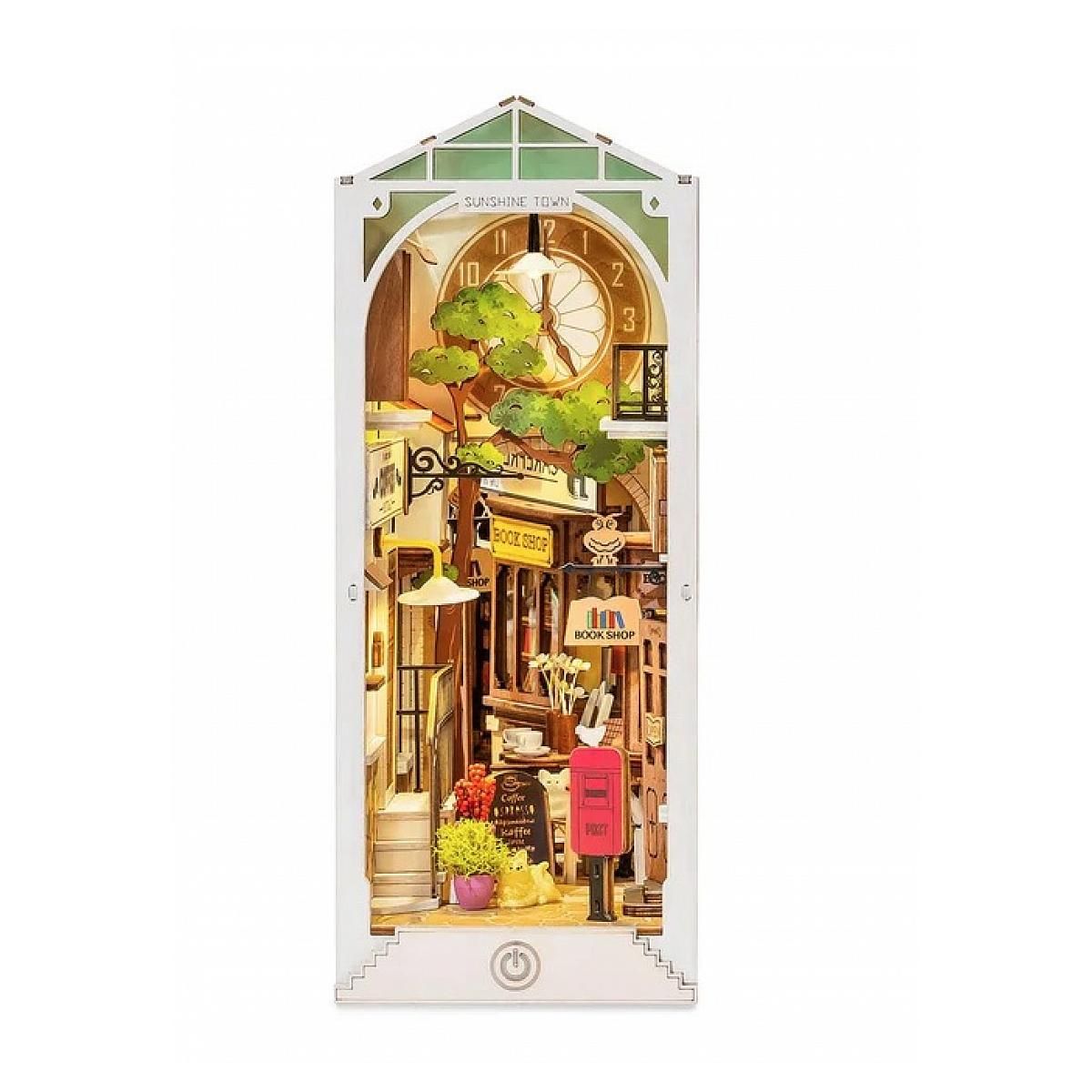 Maquette en bois à monter . Ruelle enchanté et lumineuse qui décorera votre bibliothèque . fonctionne avec 2 piles AAA non fournie descritption du montage détaillé etape par etape en dessin Mais notice en anglais