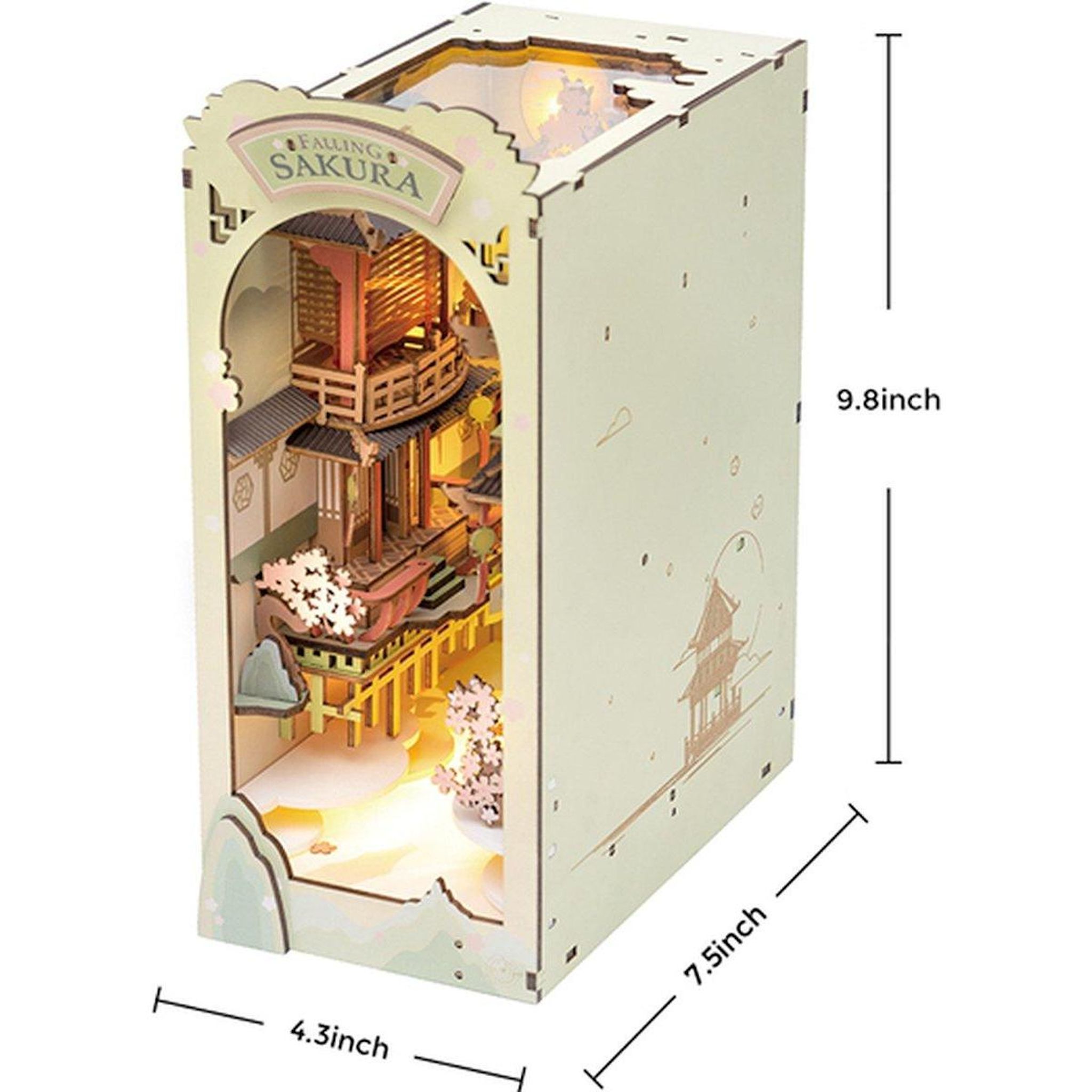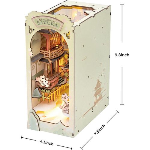 Apportez une touche japonaise à votre décoration avec ce joli serre-livre 3D en bois. Ce modèle de maquette à monter est inspiré du printemps japonais avec ses célèbres cerisiers en fleurs. Le kit contient : pièces en bois, éléments en papier, accessoires divers et éléments décoratifs, minis lampes