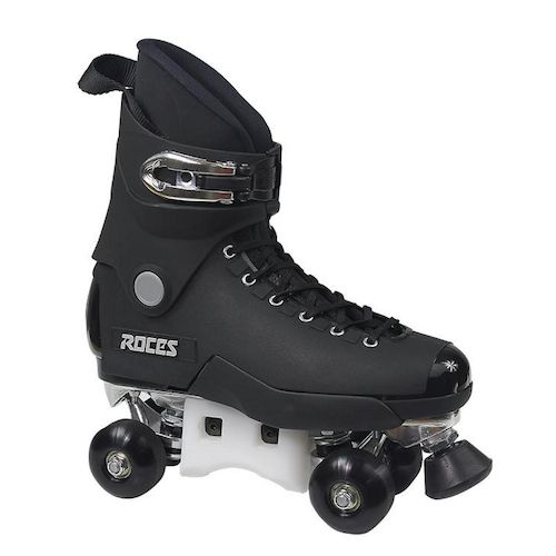 Chaussure : coque PU avec semelle anatomique. Fermeture : lacet et boucle mémoire. platine : alu. Truck : alu. Frein : PU. Roue(s) : PU 56x31mm 98A. Roulements : abec 5. Coloris : noir