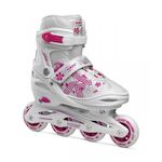 Chaussure : soft avec rembourrage anatomique pour enfant, coque HQ polypropylène. Fermeture : boucle micrométrique, strap velcro, lacet. Platine : fibre Roulements : abec 3