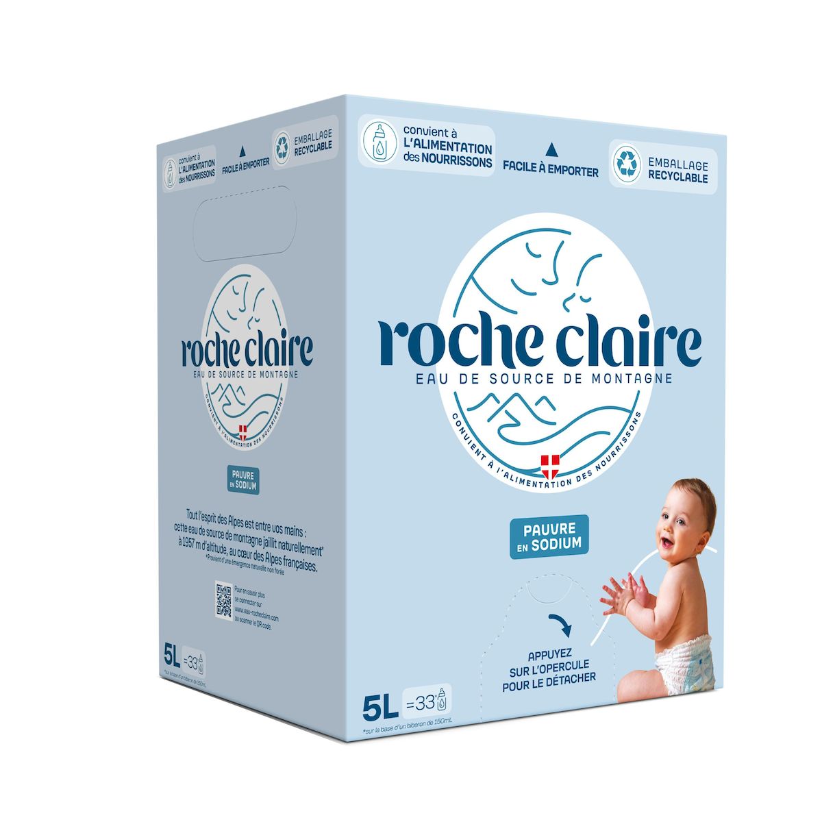 Roche Claire est une eau de source de montagne qui jaillit naturellement à 1957 mètres d’altitude en Savoie, au cœur des Alpes françaises. Sa source est située en zone de haute altitude, elle bénéficie ainsi d’une double protection : une protection contre la pollution grâce à sa situation géographique et une filtration naturelle d’origine géologique.