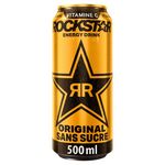 ROCKSTAR ORIGINAL SANS SUCRES, L'ÉNERGIE DONT TU AS ENVIE, AVEC ZÉRO SUCRES : Cette boisson énergissante gazeuse au goût intense et unique te donnera une énergie débordante ! Ces boissons combinent taurine, caféine, et vitamines, le tout sans sucres ! ROCKSTAR, UNE MARQUE QUI CASSE LES CODES : Prêt(e) à faire le plein d'énergie ? Lancée en 2021 sur le marché français, Rockstar vient casser les codes des boissons énergisantes avec ses recettes riches en vitamines B, C et E