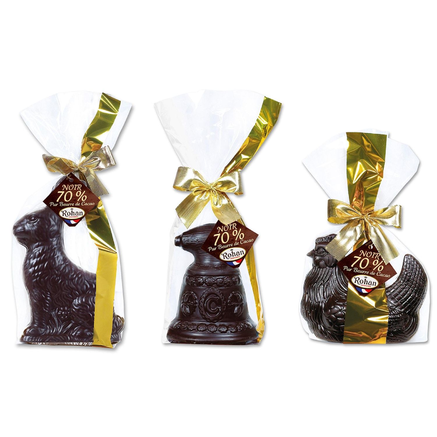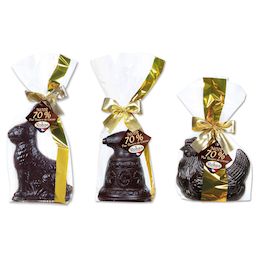 Pour les amateurs du chocolat noir, une variété de moulages chocolat noir 70%, garanti pur beurre de cacao, fabriqué en France.