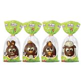 Chocolat au LAIT (cacao: 31% minimum) , chocolat blanc (cacao: 25% minimum), chocolat noir (cacao:50% minimum-décor coloré: confiserie: colorant: extrait de paprika