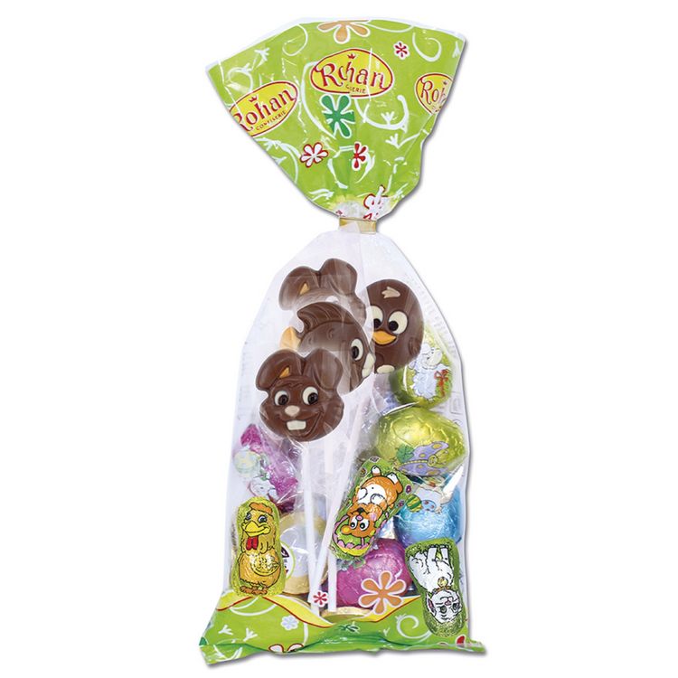 Sachet assortiment de chocolat sucettes pièces et oeufs