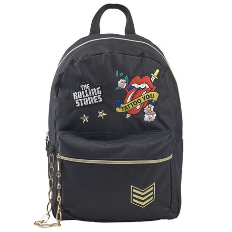 Sac à dos Rolling Stones noir avec une chaîne doré sur la poche avant zippée. Fond renforcé en 1680 deniers. Bretelles ajustables et dos rembourré. Doublure intégrale en 210 deniers et poche intérieure zippée.