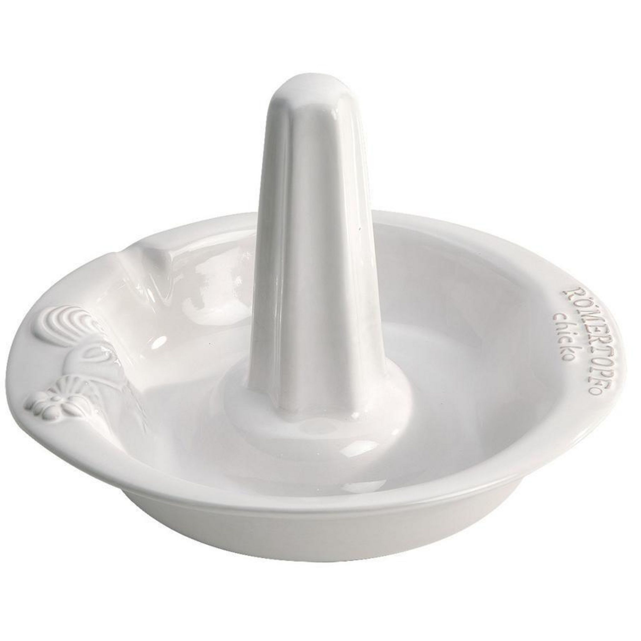 Romertopf 125 04 Le Roaster vertical Chicko ROMERTOPF 12504 est une rôtissoire à vollailes convient parfaitement pour rôtir et rendre croustillant, poulets, poulardes et petits canards.Croustillant de part en partLa chair juteuse, la peau dorée et croustillante. On enfoume la volaille sur la pointe. Le poulet cuit uniformément de l´intérieur et de l´extérieur. Le trop- plein de graisse s´écoule dans la curette.La rôtissoire Chicko, en terre cuite, est entièrement vernie et n´a pas besoin d´être trempée dans l'eau avant utilisation.