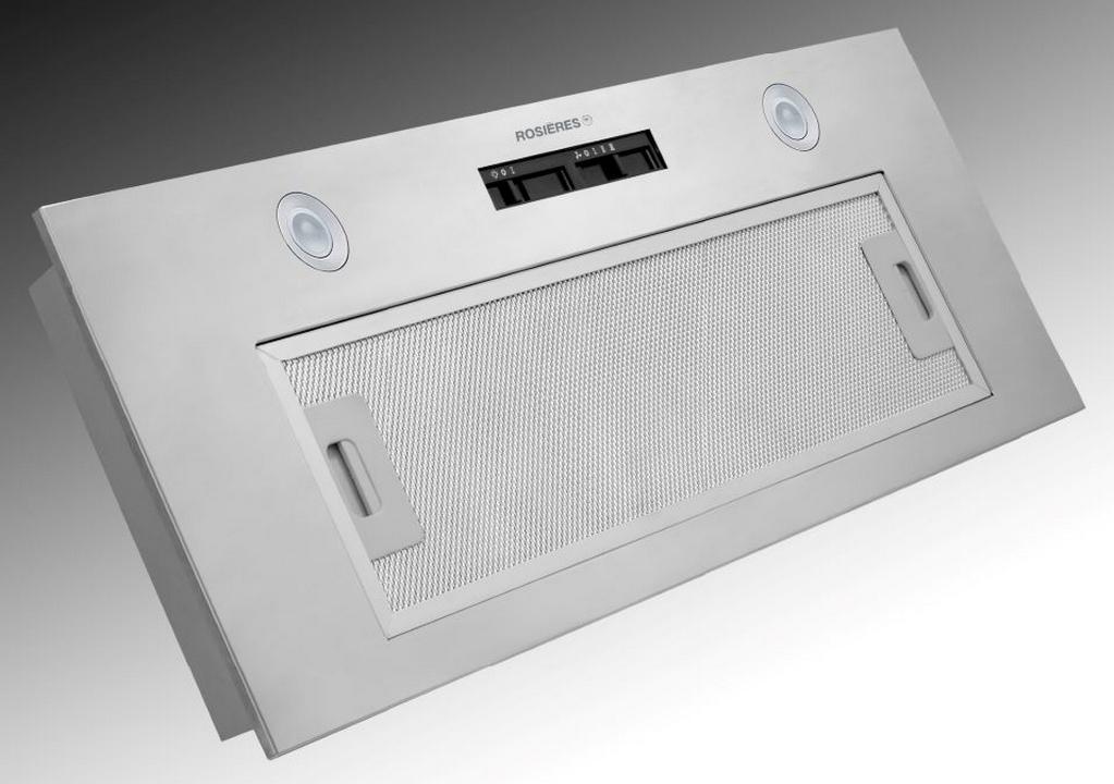 Rosieres RHG580/1IN Groupe filtrant Rosières RHG580/1IN fonctionne en évacuation ou recyclage.Eclairage LEDL?éclairage LED offre une luminosité optimisée de la zone de cuisson. Les LEDS ont une durée de vie jusqu? à 4 fois supérieure et consomment moins d?énergie qu?une ampoule altique.Filtre à graisse en aluminiumLe filtre à graisse métallique permet un filtrage optimum des graisses et peut se nettoyer au lavevaisselle.Filtre à charbonIndispensable pour une utilisation en mode recyclage, il absorbe les mauvaises odeurs et assainit l'air aspiré. Pour un confort optimal, nous conseillons de le changer tous les 6 mois.Clapet anti-retourPour les hottes installées en évacuation, le clapet anti-retour évite à l?air extérieur ainsi qu?aux vapeurs grasses, de revenir à l?intérieur de la cuisine.