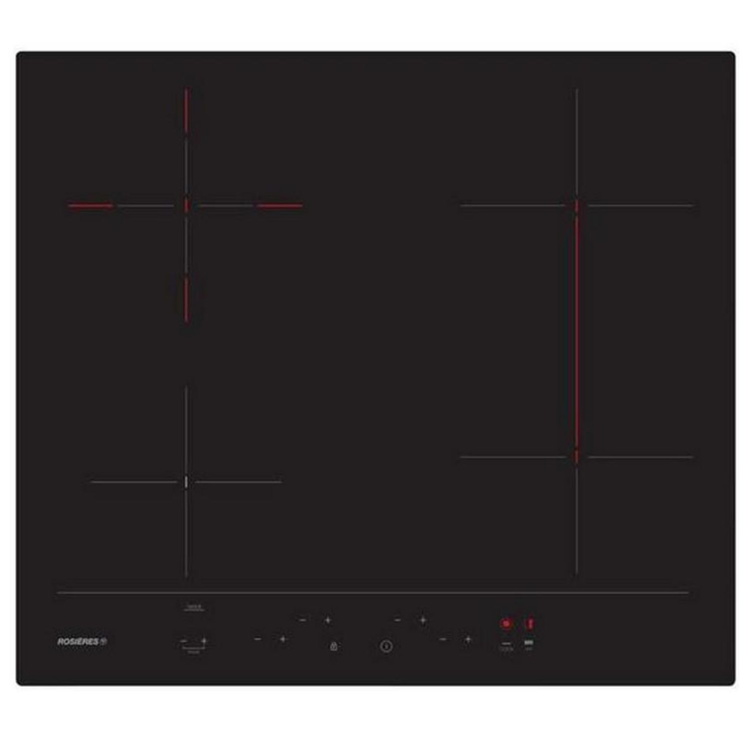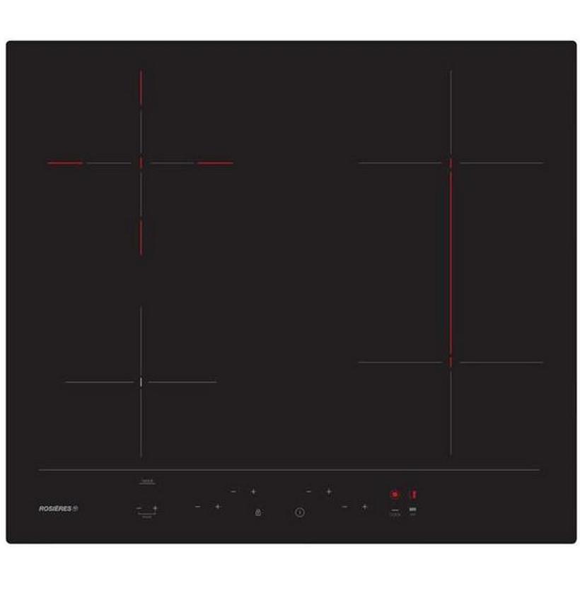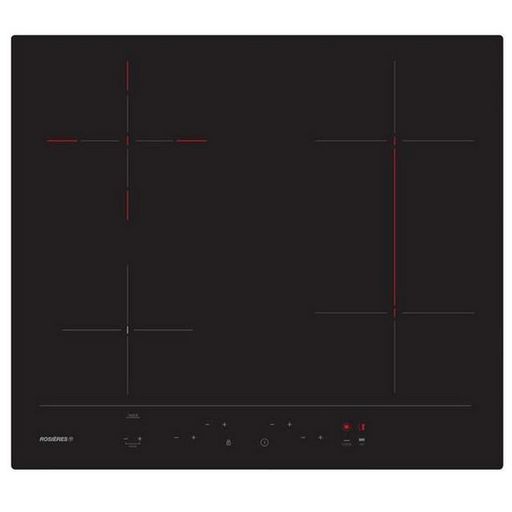 Rosieres RH64DBCP/2 Table de cuisson vitrocéramique Rosières RH64DBCP/2 dotée de 4 foyers radiants dont 1 zone flexible 40 x 19 cm et une double zone Ø 11-19 cm 1,7 kW.