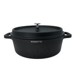 Cocotte ovale 31 cm noire en fonte d'aluminium pour une cuisson homogène des aliments ! Résistance mécanique importante. Le revêtement intérieur permet un nettoyage facile. Poignée en silicone fixe. Compatible au lave-vaisselle. Compatible tous feux dont induction.
