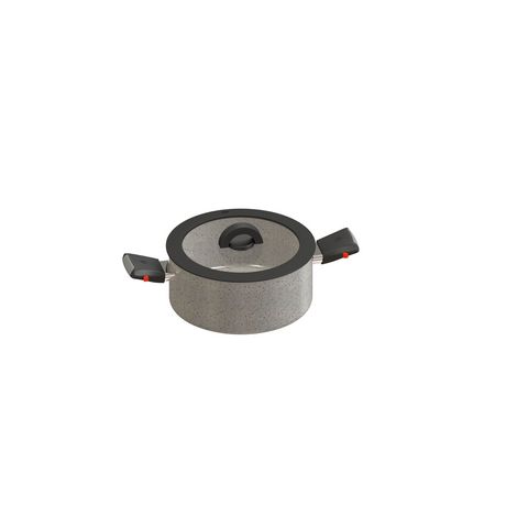 Faitout 24 cm tous feux dont induction avec poignée amovible et couvercle en verre BO GRANIT SANDSTONE