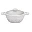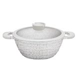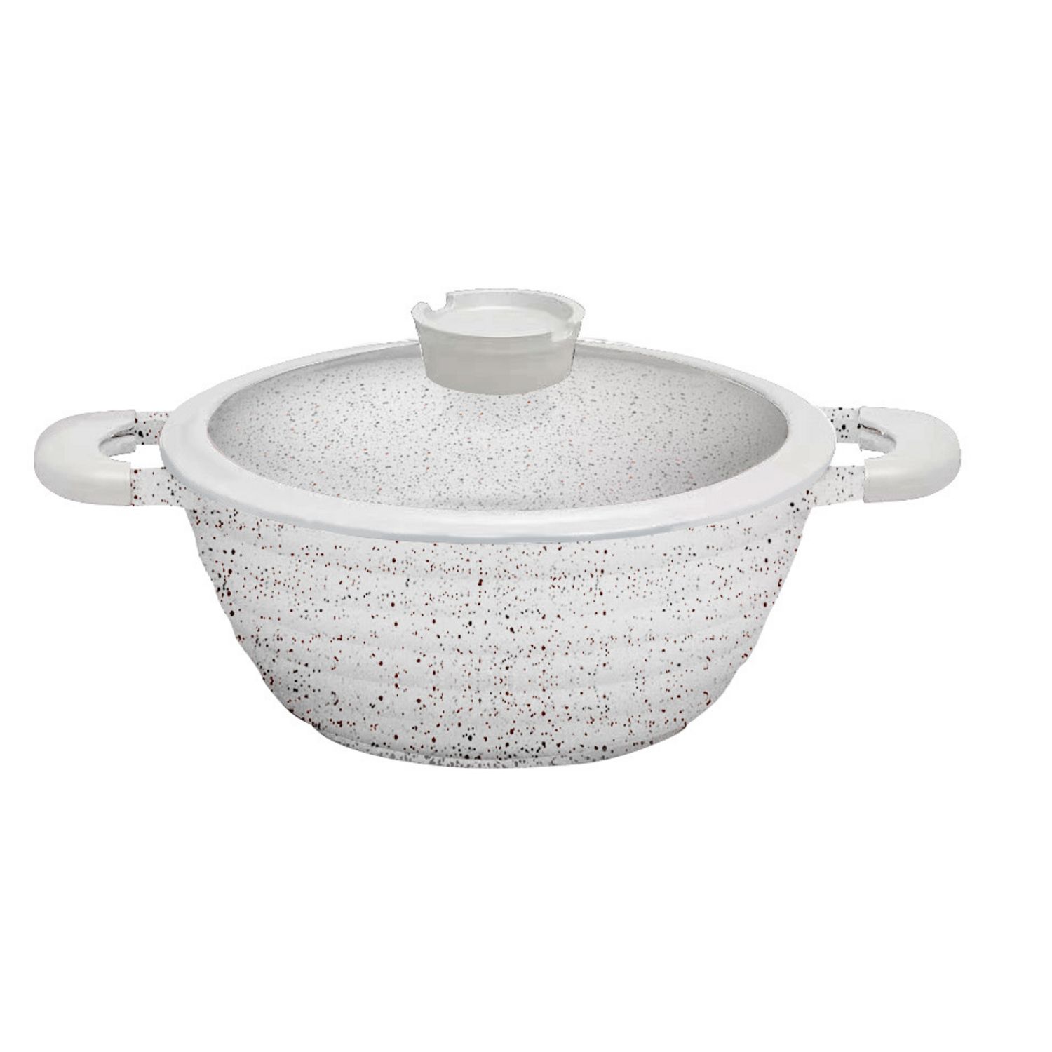 Faitout 32cm effet pierre en fonte d'aluminium pour une cuisson homogène des aliments ! Le revêtement intérieur permet un nettoyage facile. Couvercle en verre et bord en silicone. Double bec verseur. Poignée en silicone fixe. Compatible au lave-vaisselle. Compatible tous feux dont induction.