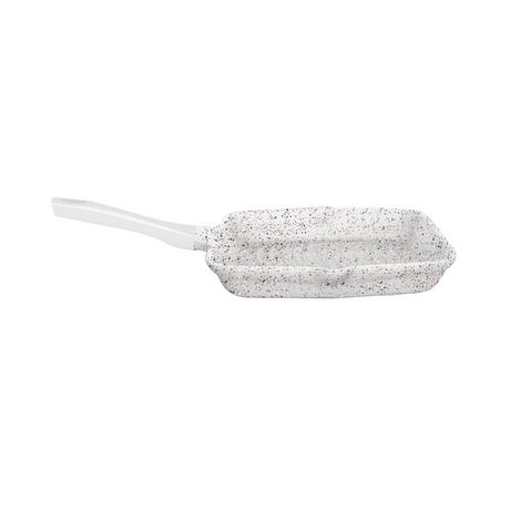 Grill 28cm effet pierre en fonte d'aluminium pour une cuisson homogène des aliments ! Le revêtement intérieur permet un nettoyage facile. Double bec verseur. Poignée en silicone fixe. Compatible au lave-vaisselle. Compatible tous feux dont induction.